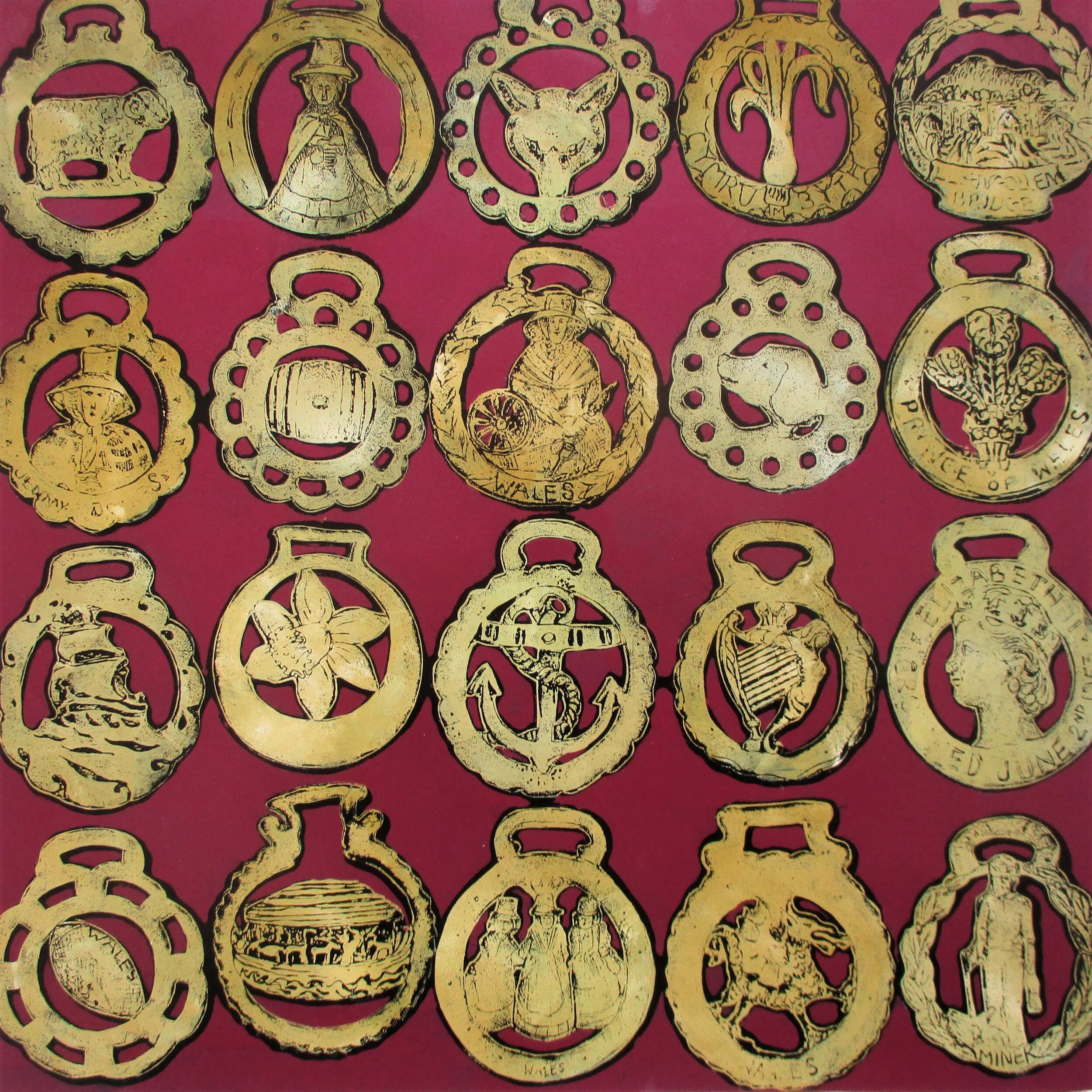 Description: Horse Brasses seem to be in every bric-a-brac shop and it never occurred to me to start collecting them until I noticed how suitable their shapes would be for designing into printmaking plates, with their crudely designed themes and lettering.
