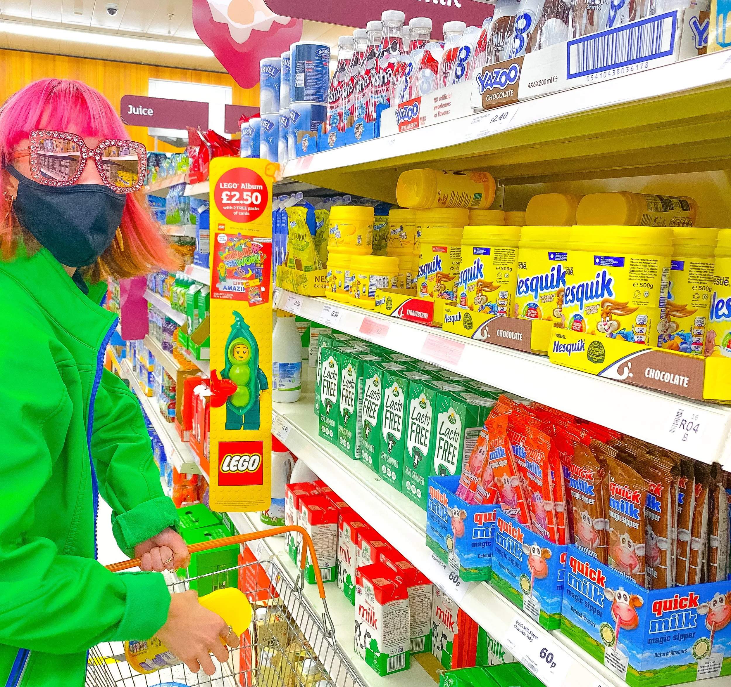 Description: 'We are all a Participant', is a photograph taken back in October, in Sainsbury's, 2020. Focusing on my own consumption in a documentation format, to also destigmatise the irony of responding to consumerism, with negative connotations, yet consuming and buying as normal, yourself. Within this self-portrait you learn a lot about my character, through the act of shopping - linking to the portrayal that consumerism creates an identity. Advertising, the one device that drives this notion, I wanted to display within the image itself, with all the bold, saturated colours - creating an appealing image, creating interest.