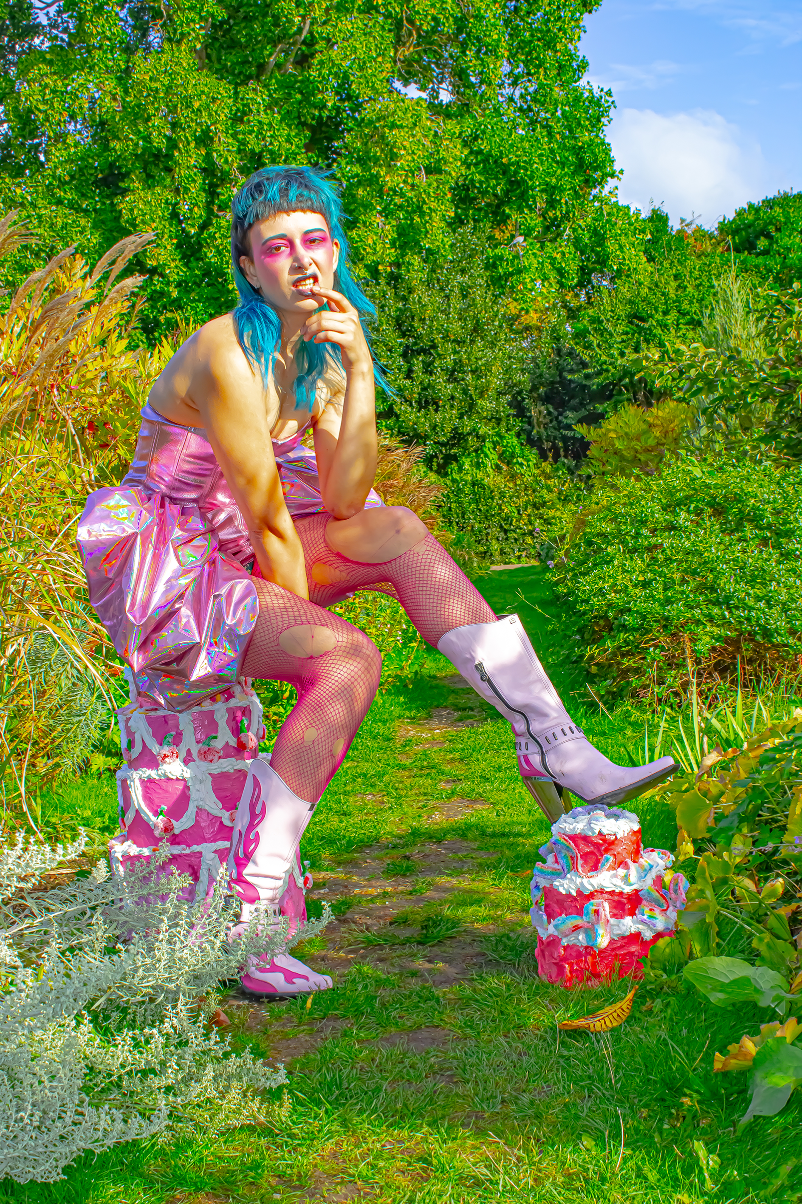 Description: Lucy and myself decided to collaborate due to both of our garments/sculptures presenting a sweet taste of confectionery. The visuals portray Lucy Ratcliff's fashion collection 'Sweet Tooth' combined with two of my cake sculptures. This amalgamation of pink and the greenery within the photoshoot, shot by Teo Panov (@panovteo) and featuring Romy Valentine (@blowromy) produced an 'Alice in Wonderland' fairytale of which we are both very proud of. We are endlessly grateful to everyone involved.