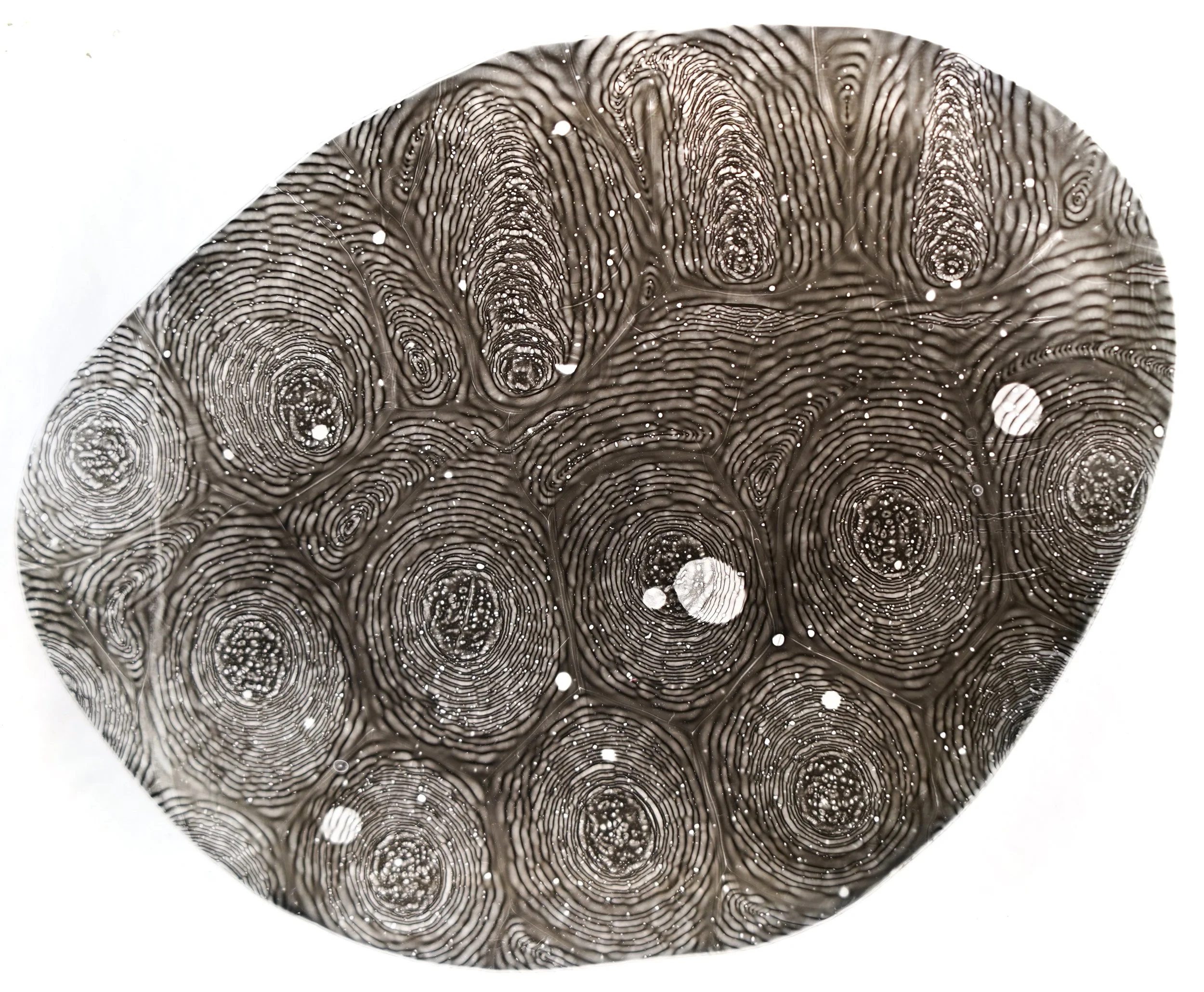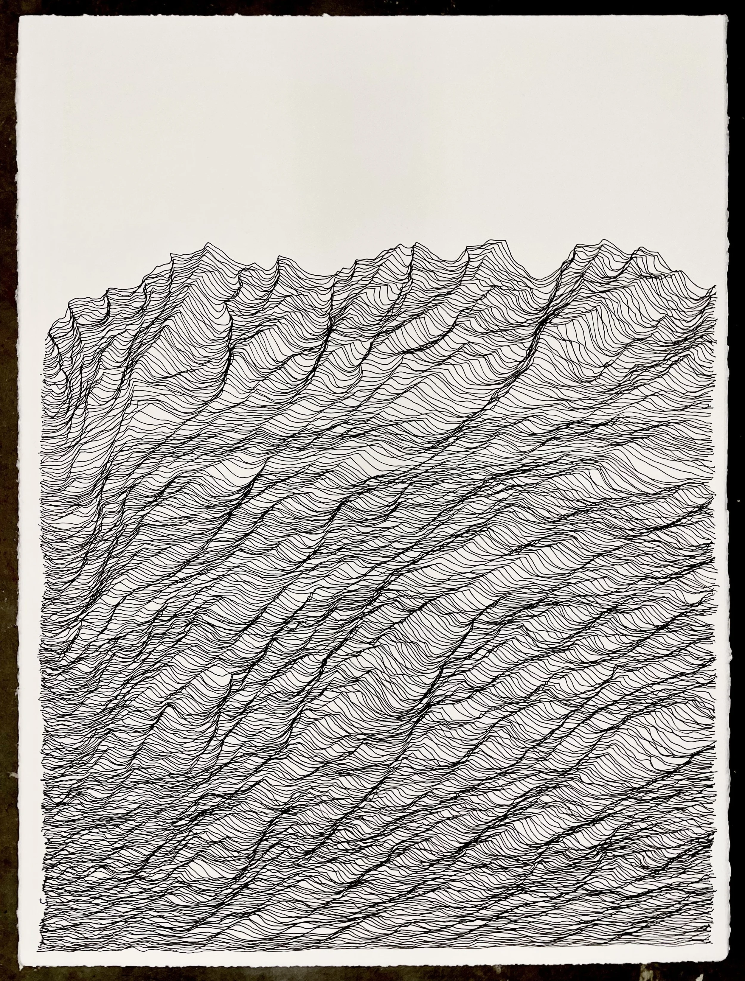 Description: Drawing references from environments both real and imaginary, I incorporate landscape, gesture, and chance in my works. I create meditative visuals through automatic drawing to create a reprieve from the cacophony of commercialism and consumerism in the 21st century.