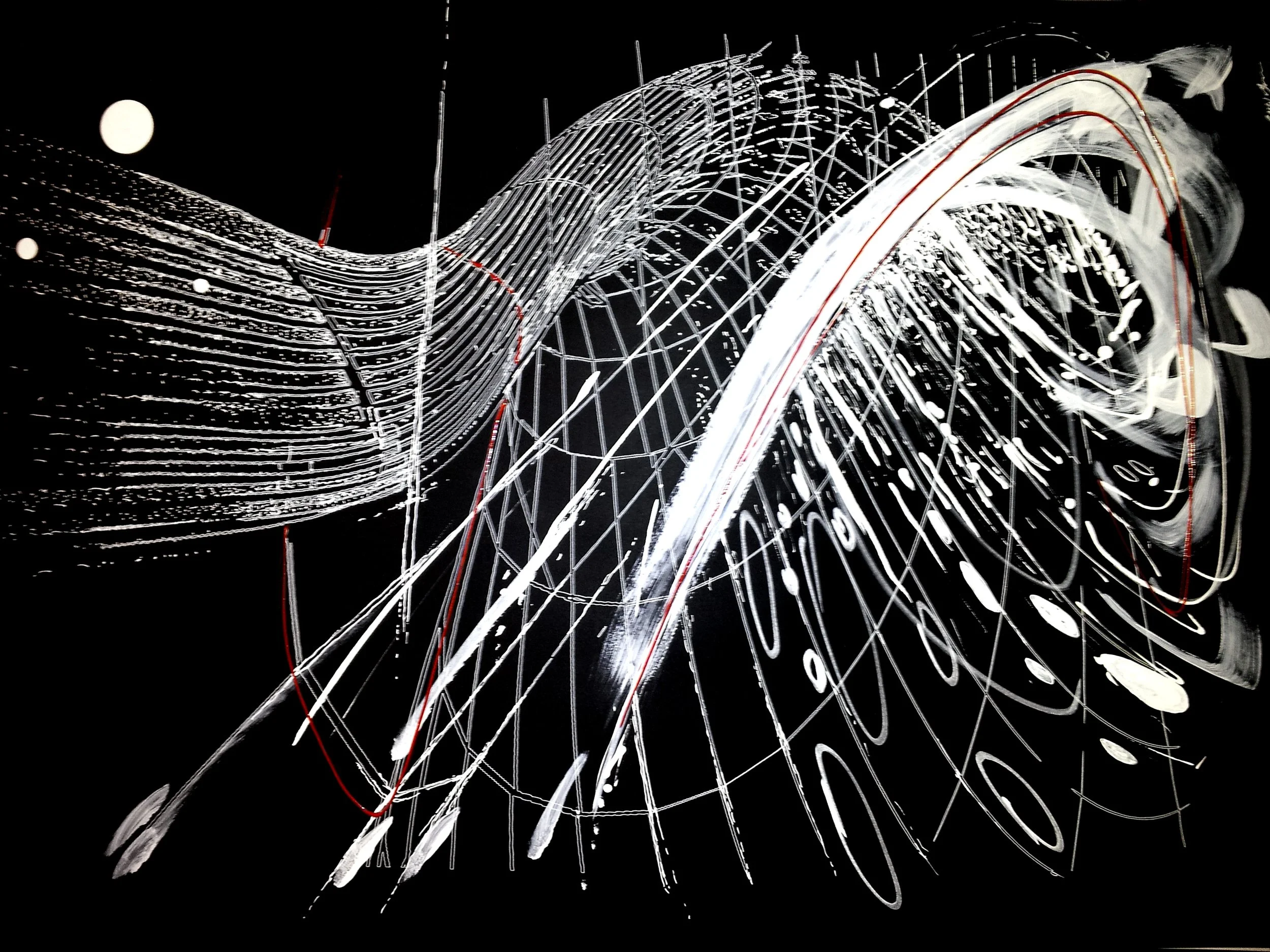 Description: White #12 portrays the lines of energy followed by a Shaman in their session. Shamans are very sensitive to energy, they can "see" it and follow it through according to the intention of the ceremony. My sculptural drawing intends to honour that and to make the visible invisible.