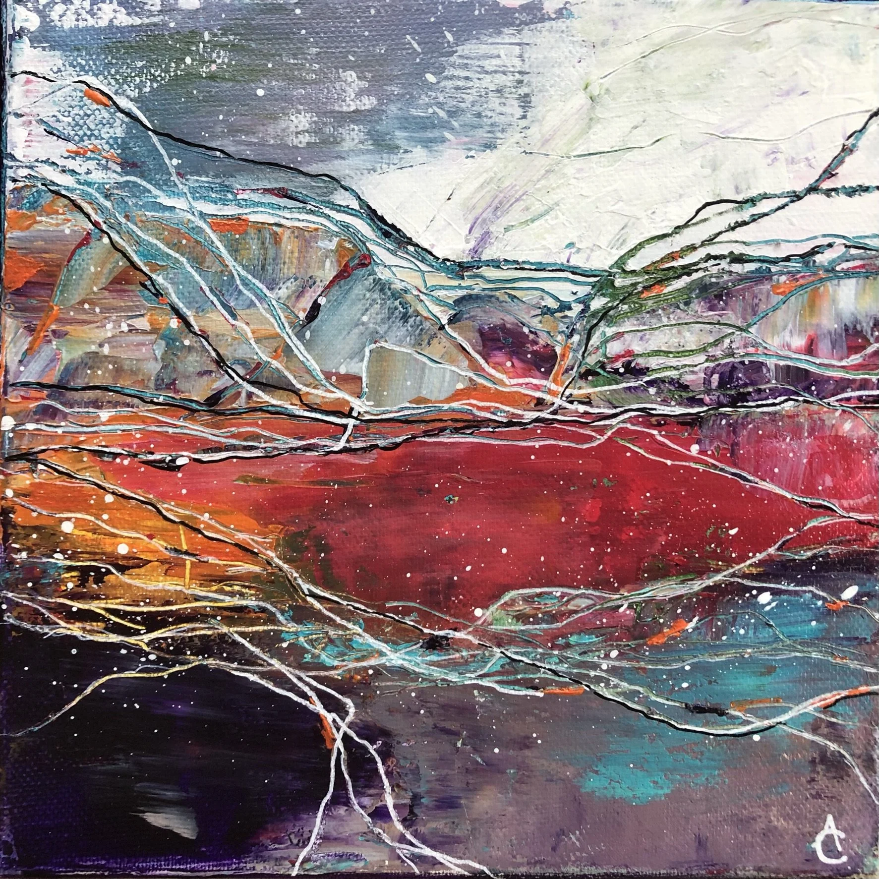 Description: This is a rather small (20cm x 20cm) abstract expressionist artwork. To me its decomposing lines fit well with your call for work. I do not wish to comment further as I do not wish to place too much of an interpretation in the mind of the viewer.